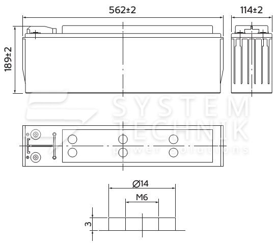 - Срок хранения без подзаряда: 6 мес. при 25°C;