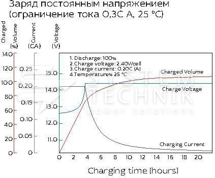 - Срок хранения без подзаряда: 6 мес. при 25°C;