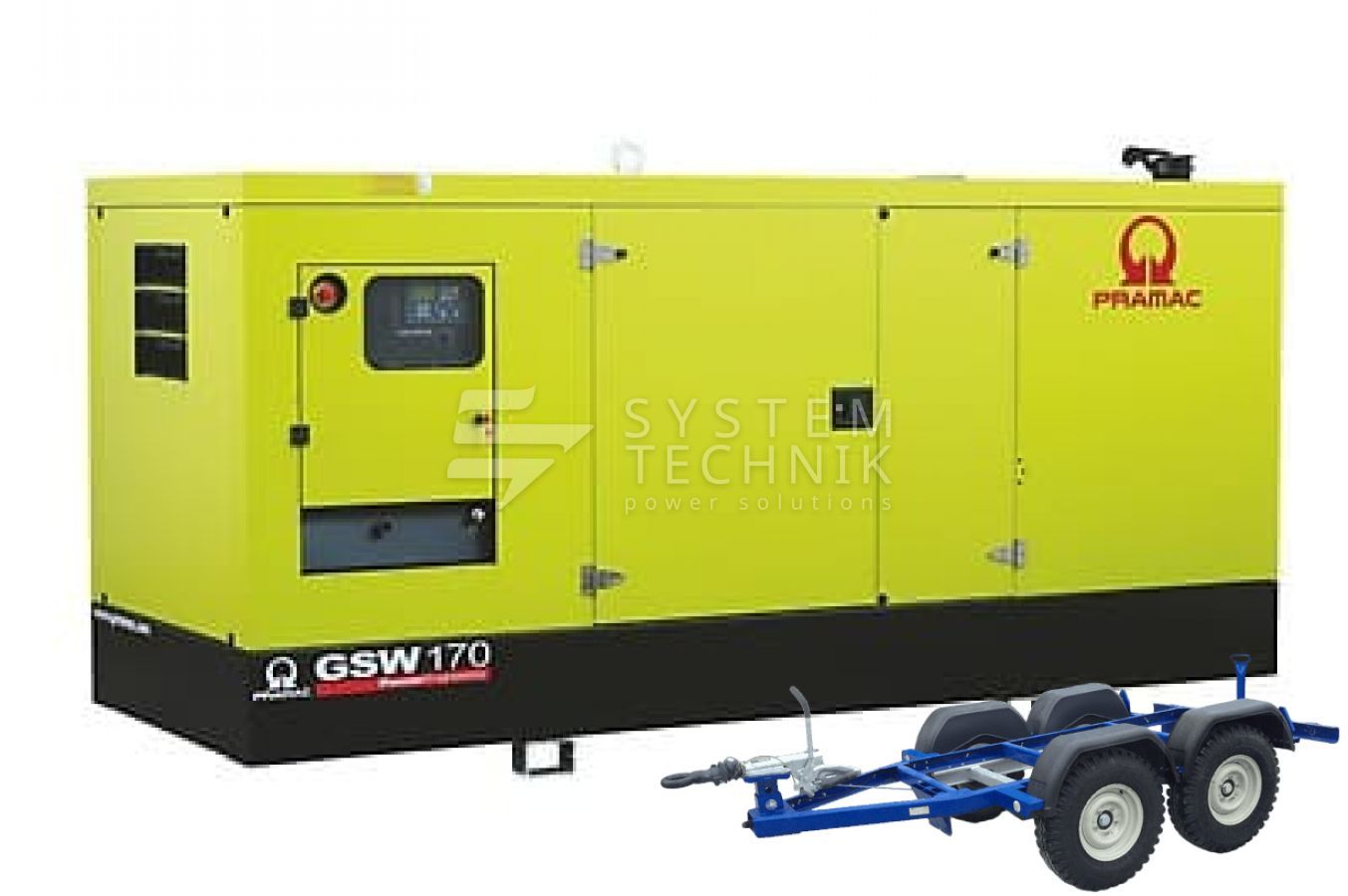 - Дизельный генератор Pramac GSW 170 V 480V В кожухе на прицепе