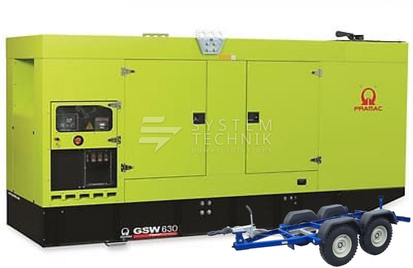 - Дизельный генератор Pramac GSW 630 DO 380V В кожухе на прицепе