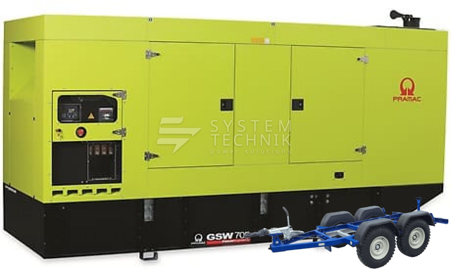 - Дизельный генератор Pramac GSW 705 DO 380V В кожухе на прицепе
